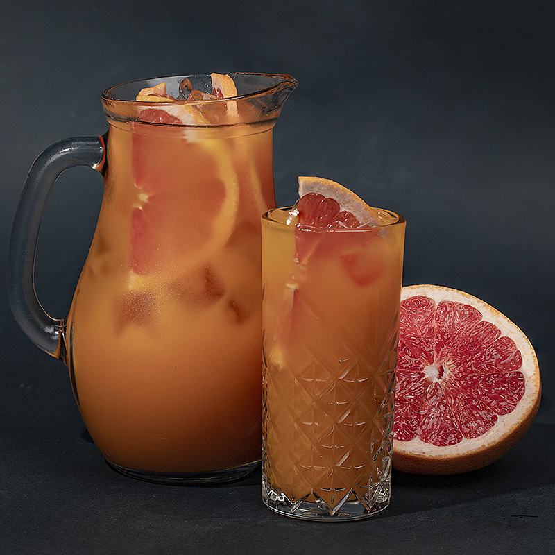 сок грейпфрут, пюре манго, сахар, лимон, содовая